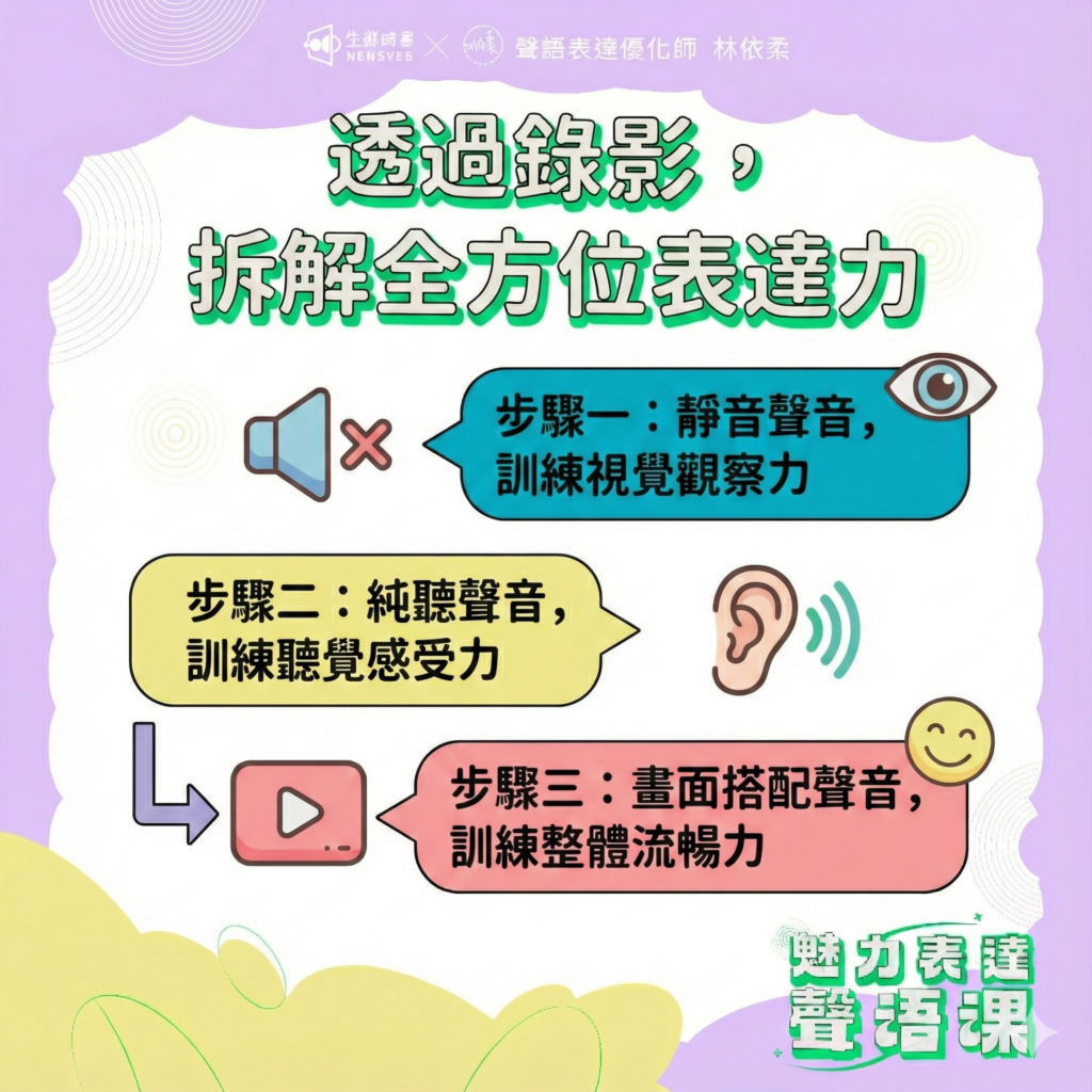 這三步驟,是我自己從一支影片都拍不好,到後來能站上專業舞台、拍攝教學影片、主持節目、並被各大企業邀請演講的關鍵訓練。