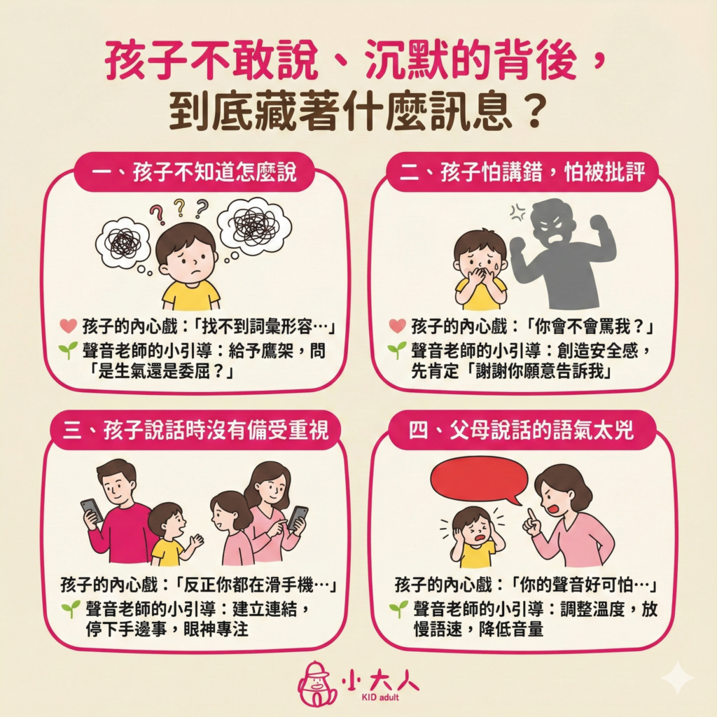 當孩子覺得自己「講不好會被糾正」,最安全的選擇就是沉默。